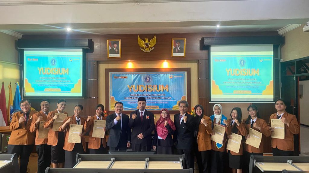 Malang, 23 Februari 2026 – Fakultas Bahasa dan Sastra (FBS) Universitas PGRI Kanjuruhan Malang (UNIKAMA) menyelenggarakan kegiatan Yudisium Semester Ganjil Tahun Akademik 2025/2026 pada Senin (23/2/2026) bertempat di Ruang Abdul Radjab. Kegiatan ini diikuti oleh 10 mahasiswa dari Program Studi Sastra Inggris yang telah menyelesaikan seluruh rangkaian studi akademik. Prosesi yudisium berlangsung dengan khidmat melalui […]